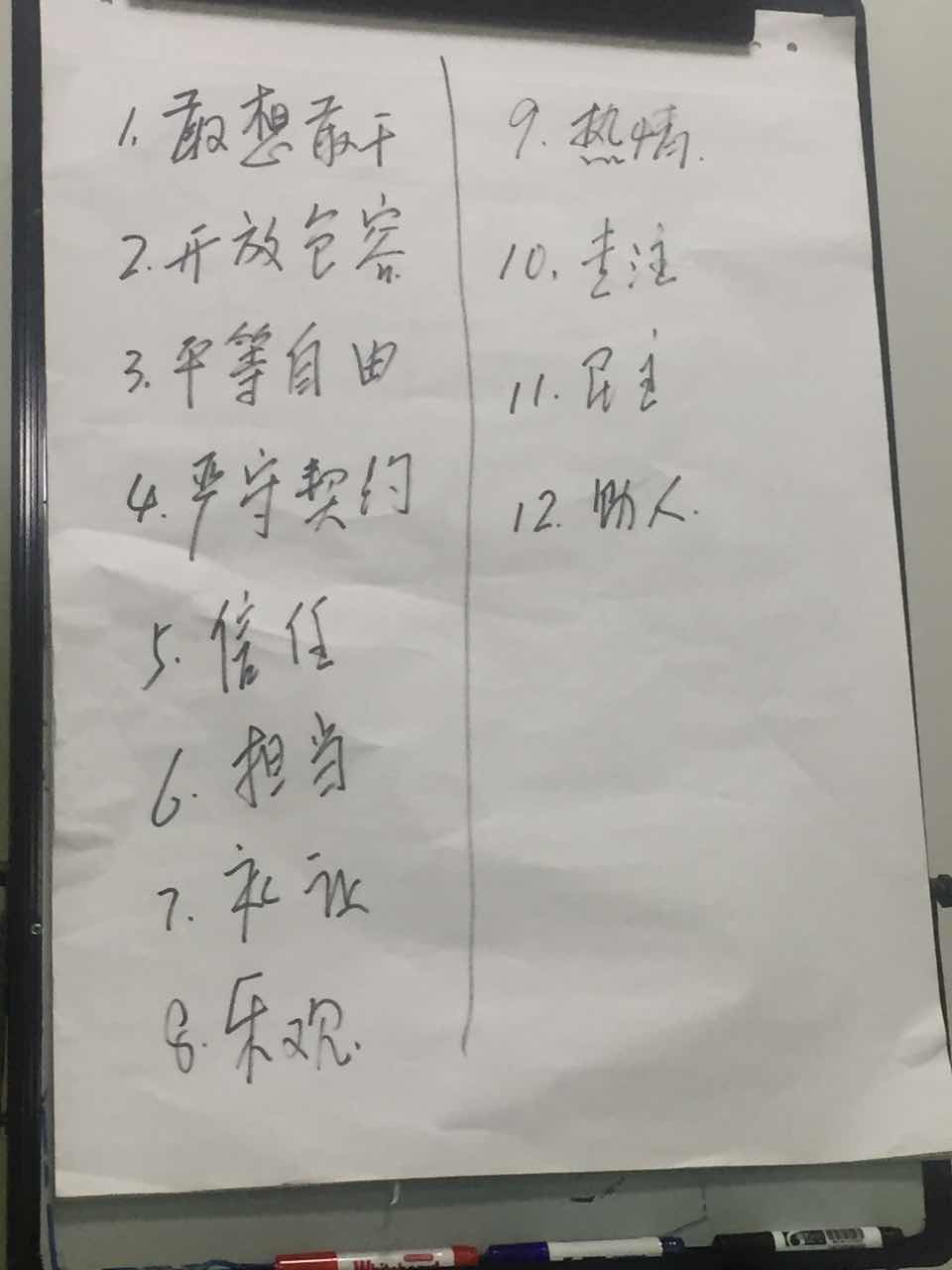 沙龍上,王老師從:敢想敢干,開放包容,平等自由,嚴守契約,信任,擔(dān)當,禮讓,樂觀,熱情,專注,民主,助人等方面與大家展開了討論和分享,輕松幽默的風(fēng)格,深入淺出的分析,深度與廣度并存的分享,讓大家沉醉其中。