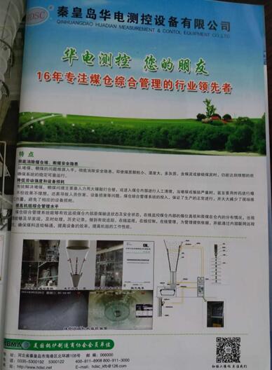 2017年9月,秦皇島華電測(cè)控設(shè)備有限公司與《熱力發(fā)電》雜志攜手,為打造權(quán)威交流平臺(tái),在雜志上刊登我公司產(chǎn)品――煤倉(cāng)綜合管理系統(tǒng)。