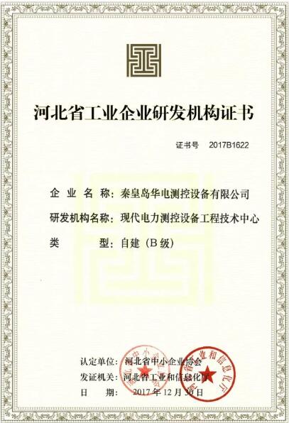 近日獲悉,公司建設(shè)的研發(fā)機(jī)構(gòu)“現(xiàn)代電力測控設(shè)備工程技術(shù)中心”被河北省中小企業(yè)協(xié)會(huì)和河北省工業(yè)和信息化廳認(rèn)定為河北省工業(yè)企業(yè)研發(fā)機(jī)構(gòu),并頒發(fā)了證書,證書號(hào)為2017B1622。