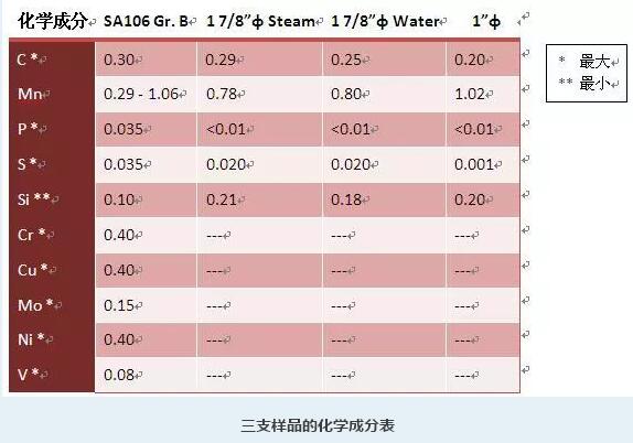 經(jīng)過(guò)近兩個(gè)月的檢驗(yàn),華電測(cè)控收到了來(lái)自美國(guó)電力公司的檢測(cè)報(bào)告。報(bào)告顯示所有樣品均符合SA106 Gr. B標(biāo)準(zhǔn)。以下是檢測(cè)結(jié)果。