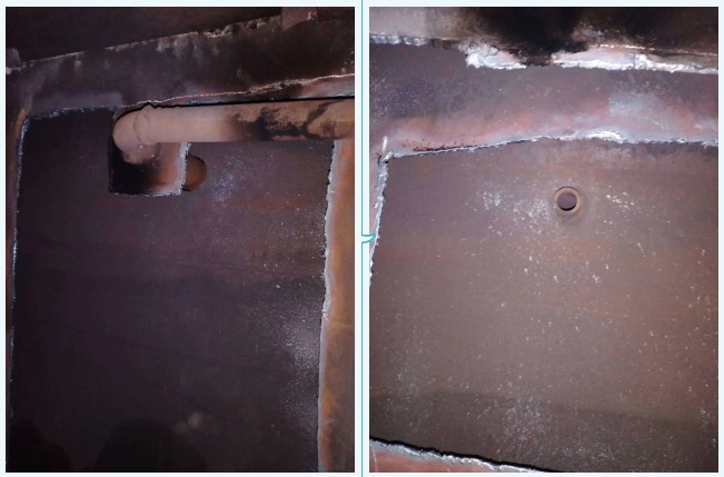 新疆某化工有限公司鍋爐汽包自投產(chǎn)以來電接點(diǎn)水位計(jì)一直存在測量筒內(nèi)無水、無法測量問題,困擾該廠多年,一直無法解決。2019年新疆某化工有限采購我公司高精度取樣電極傳感器并于同年9月檢修期間對#2鍋爐汽包其中一臺電接點(diǎn)水位計(jì)進(jìn)行更換。起爐后高精度電極取樣傳感器仍然出現(xiàn)測量筒內(nèi)無水情況,現(xiàn)場運(yùn)行人員遂將情況反饋給我公司,公司對此高度重視,前后兩次派遣工程技術(shù)人員前往現(xiàn)場進(jìn)行實(shí)地考察檢測。在鍋爐運(yùn)行過程中對設(shè)備進(jìn)行多項(xiàng)試驗(yàn)后發(fā)現(xiàn):將高精度電極取樣傳感器汽側(cè)取樣一次閥門調(diào)小后測量筒內(nèi)會出現(xiàn)少量水,完全打開汽側(cè)取樣一次門測量筒內(nèi)反而無水,我公司產(chǎn)品故障排除。為幫助解決客戶問題,2020年5月利用檢修期間將汽包打開,我公司工程技術(shù)人員張永廣進(jìn)入汽包內(nèi)進(jìn)行全面檢查,在拆除汽包內(nèi)側(cè)擋板后發(fā)現(xiàn)汽包內(nèi)聯(lián)箱內(nèi)原有汽側(cè)取樣管路并未焊接,水位計(jì)汽側(cè)取樣并未接入汽包內(nèi)部,內(nèi)聯(lián)箱內(nèi)高壓汽水混合物干擾水位計(jì)汽側(cè)取樣,造成測量筒內(nèi)無水、水位無顯示。我公司配合檢修人員對此進(jìn)行整改,整改后水位計(jì)顯示正常。自此,該廠水位計(jì)多年無法測量問題得以解決。