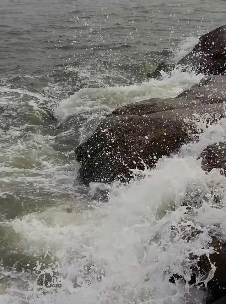 海浪無(wú)情地拍打著巖石,濺起朵朵浪花甚是壯觀。